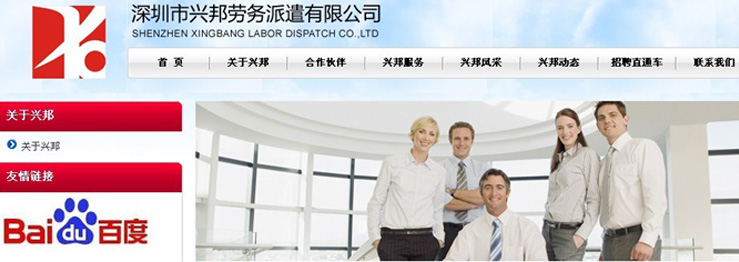 勞務外包網站建設公司,做網站優化關鍵詞排名SEO,營銷型,手機網站建設,響應式,品牌型,電商/門戶,勞務外包外貿型網站建設. 深圳市興邦勞務派遣有限公司(簡稱:興邦勞務)是經深圳市工商行政管理局注冊成立的正規合法勞務派遣機構,是一家專業從事勞務派遣、人才租賃、勞務外包、人事外包、培訓咨詢、企業管理服務的企業