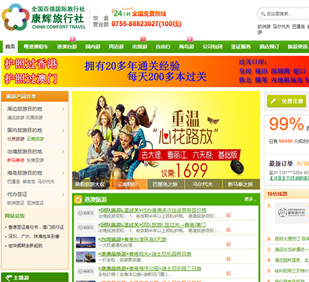 旅行社集團,旅游公司網站建設公司,做網站優化關鍵詞排名SEO,營銷型,手機網站建設,響應式,品牌型,電商/門戶,旅行社集團,旅游公司外貿型網站建設. 深圳康輝現有員工800多名,深圳市設有60多個營業網點,為廣大市民提供了快捷方便的旅游報名服務。