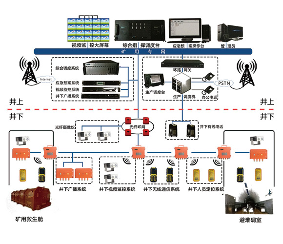 1.通訊,系統的基本功能,可實現整個礦井內及井上之間的通信,為生產提供及時有效的信息交流,實現了井下通信、有線無線通信、調度通信、語音通信的一體化。