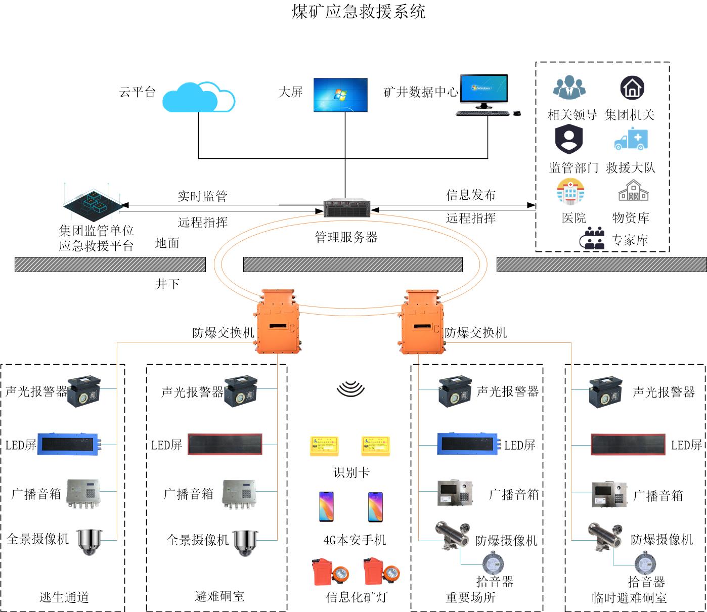 煤礦應(yīng)急救援管理系統(tǒng)哪個(gè)品牌好?煤礦應(yīng)急救援管理系統(tǒng)通過(guò)5G網(wǎng)絡(luò)信息傳輸入網(wǎng),煤礦井下眾多的設(shè)備如地面智能信息發(fā)布終端,井下應(yīng)急LED信息牌、井下應(yīng)急LED指示牌、井下應(yīng)急聲光報(bào)警器、井下應(yīng)急調(diào)度攝像頭等煤礦應(yīng)急救援管理系統(tǒng)設(shè)備通過(guò)5G網(wǎng)絡(luò)連接,實(shí)現(xiàn)了井下語(yǔ)音、視頻、數(shù)據(jù)一網(wǎng)承載,各種智能化操作系統(tǒng)信息的一網(wǎng)傳輸。井下的作業(yè)情況的數(shù)據(jù)信息可以實(shí)時(shí)傳回至地面總調(diào)度室,調(diào)度人員通過(guò)大屏幕便可以實(shí)時(shí)觀看深井下的采掘、運(yùn)輸、檢修等情況,通過(guò)系統(tǒng)的可視化救援流程,實(shí)時(shí)對(duì)救援過(guò)程進(jìn)行監(jiān)控管理、逃生救援引導(dǎo)、常規(guī)信息發(fā)布、安全警示教育、環(huán)境安全信息實(shí)時(shí)顯示、預(yù)警預(yù)報(bào)、調(diào)度廣播等作用,有效解決應(yīng)急救援井下信息“最后一公里”,提升煤礦應(yīng)急救援水平,提高應(yīng)急救援效率,促進(jìn)煤礦信息化和數(shù)字化礦山建設(shè)。