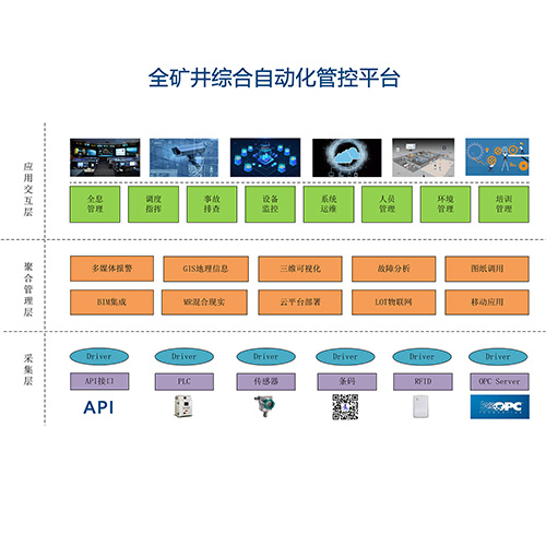 礦井智能化綜合管控平臺是以“礦井設備自動化系統管控云平臺+礦井智能化綜合解決方案”為核心的一體化管控云平臺,融合了“云計算、物聯網、大數據、工業互聯網+”等多種技術,以實現礦井機電設備的“全生命周期管理”、井下生產設備的“自動化、少人化”、電力設備運維的“智能化、無人化”、隱患故障處理的“動態化、實時化”、管理運營的“數字化、智能化”,打造大數據時代的智慧煤礦。