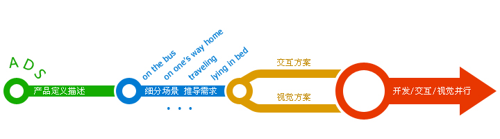 從源頭的戰略層面上建立了統一的認知,我們接下來開展的工作就有根據了。既然核心是解決“移動場景聽歌“的問題,我們必須首先弄清楚什么是”移動場景“?移動環境和PC環境差異甚大,碎片時間的使用更為突出。用戶一天是怎么活動的呢?每次拿起手機聽音樂都是什么時間?上班的公車上、走路、晚上睡覺前?在這些點上用戶都會做些什么?簡單的腦暴可以羅列各個可能的使用場景,但還比較粗糙。場景的構想需要建立在高度的認知上,這時候用研的切入顯得相當關鍵,用戶特征、喜好、使用習慣…對用戶越了解,場景就越能貼近真實、越能發現更多的細節。這些都為后續的設計決策提供了有力的依據。