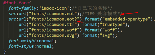 src:url("fonts/icomoon.eot") format("embedded-opentype"),/*后綴為eot,format對應的字符串*/