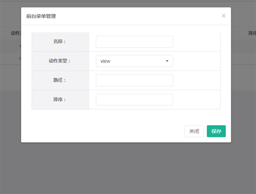 aria-hidden="true" id="btnCancel"> &times; </button> <h4 class="modal-title" id="myModalLabel"> 前臺菜單管理 </h4> </div> <div class="modal-body"> <div> <table width="100%" border="0" class="userCon_2"> <tr> <th width="30%">名稱:</th> <td width="70%"> <input type="text" name="Name" class="form-control"